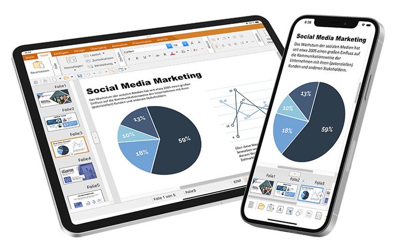 FreeOffice ist ein vollständiges Officepaket mit Textverarbeitung, Tabellenkalkulation und Präsentationssoftware – alle kompatibel zu ihren Gegenstücken bei Microsoft Office (Word, Excel und PowerPoint).